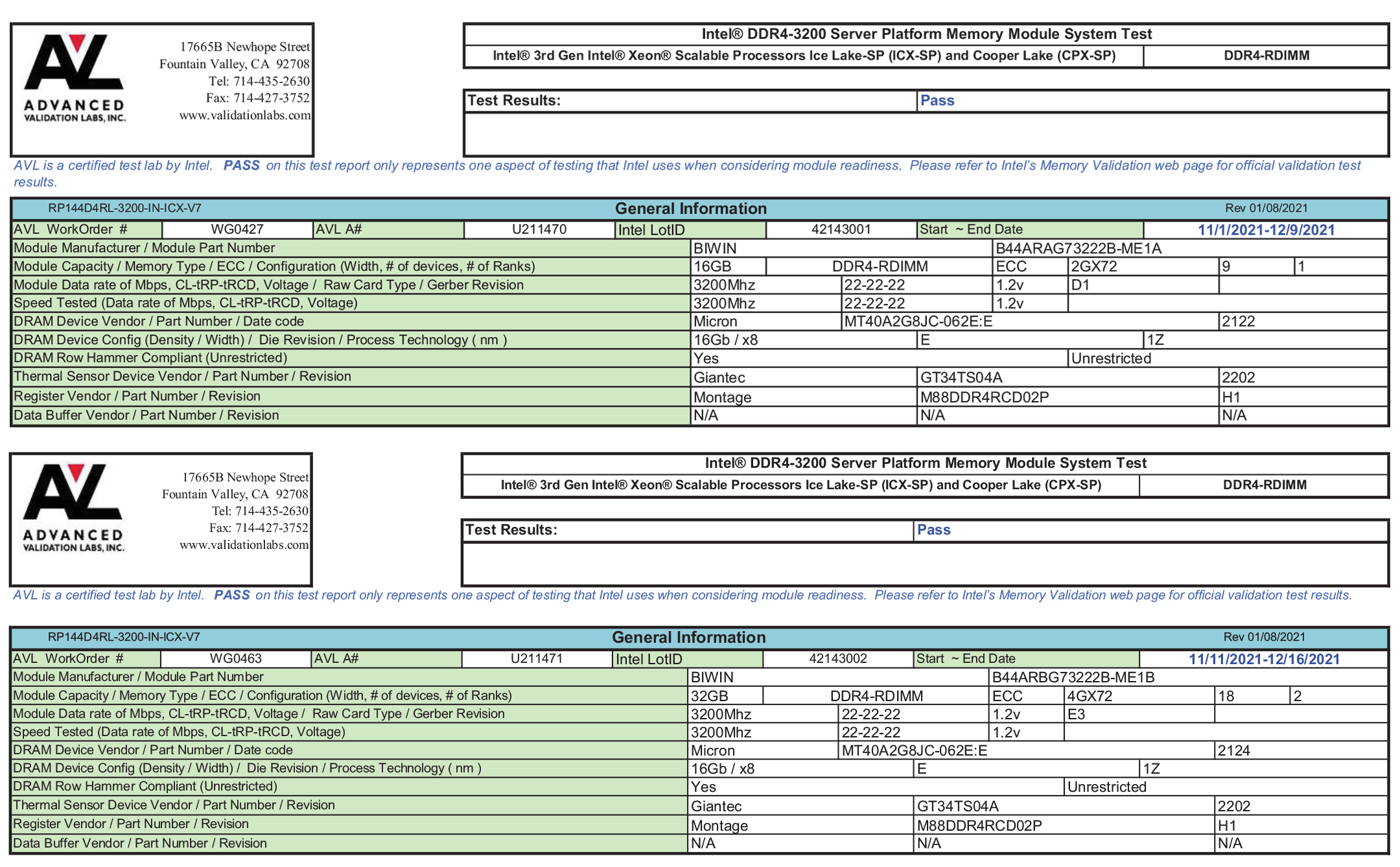 佰維服務(wù)器內(nèi)存RD100系列DDR4 RDIMM通過Intel授權(quán)實驗室AVL認證