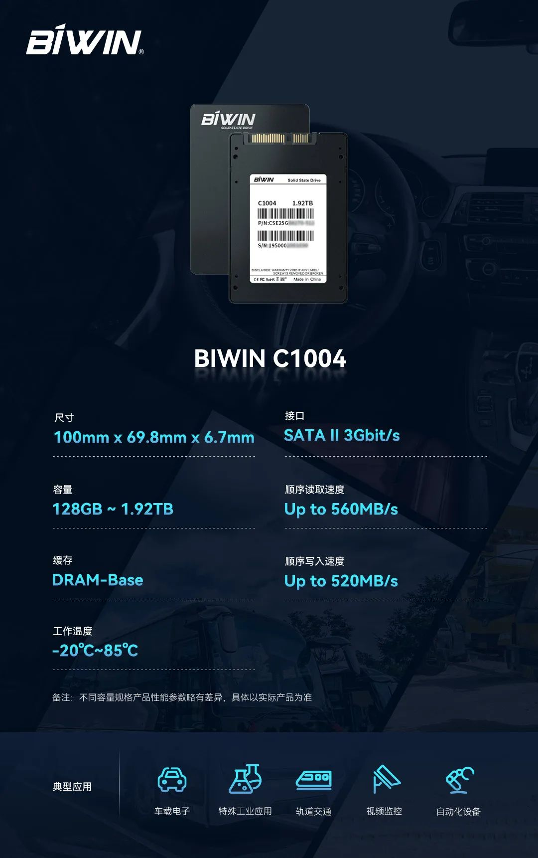 專為車載NVR/DVR監控系統打造,佰維C1004系列SSD最大容量1.92TB外置SATA接口,采用 V-REC算法使高密度數據讀寫不掉速,另支持寬電壓、溫度感應、耐高低溫、固件備份、SMART監控、掉電保護等功能,多項加固設計輕松應對顛簸、震動環境下數據存儲的挑戰,實現車載監控數據全天候、持續、穩定、安全地記錄與保存,具備高品質、高性能、高耐用性等優異特性。