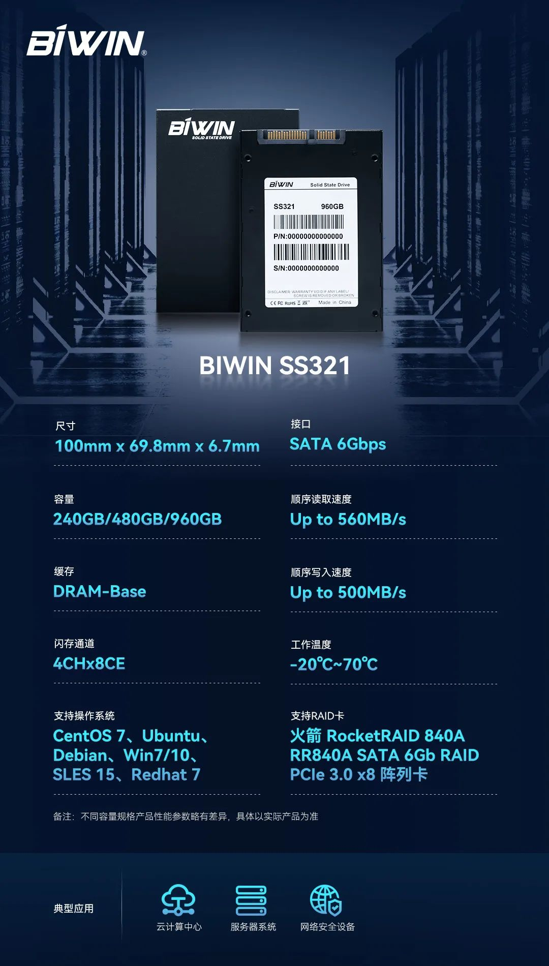在佰維企業級存儲產品中,頗具亮點的當屬針對服務器系統盤應用推出的SS321系列 SATA 2.5" SSD。