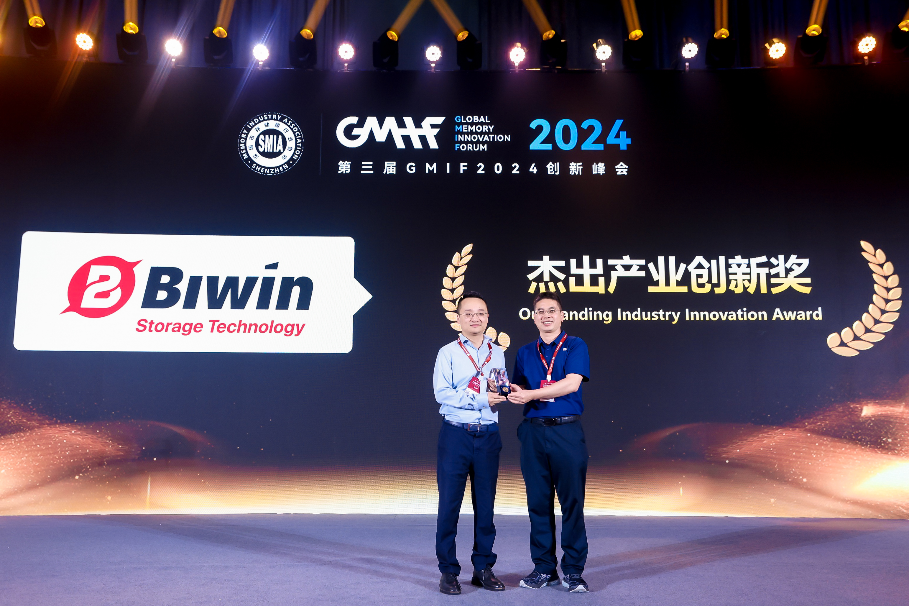 佰維存儲總經理/CEO何瀚代表公司領取GMIF2024“杰出產業創新獎”