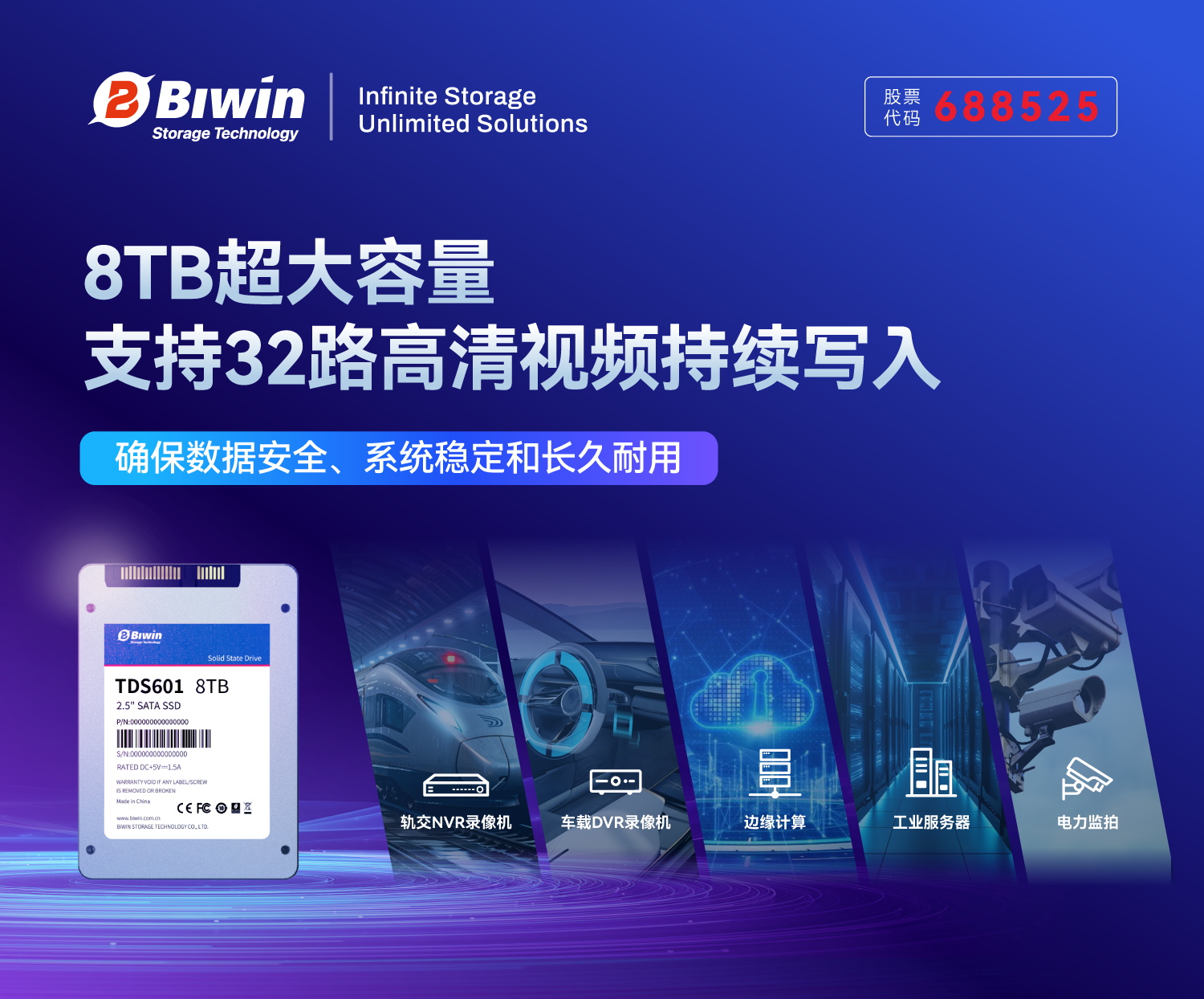 在智慧交通、智慧城市快速普及下,視頻監控系統正朝著高清化、多路化和智能化方向加速演進,存儲設備的性能、穩定性和可靠性已成為保障系統高效運行的關鍵因素。佰維存儲正式推出全新一代工業級SSD產品——TDS600系列,系列產品以8TB超大容量、媲美企業級的穩態性能、全方位高可靠性設計全國產化BOM為核心亮點,全面滿足軌交、車載、電力、安防及邊緣計等關鍵領域的嚴苛需求。