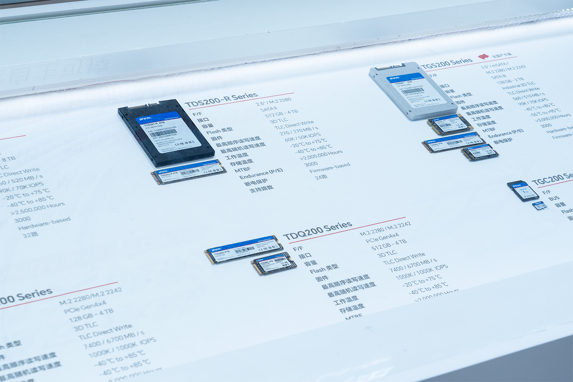 系列產品在寬溫運行、多路并發寫入、長期穩定工作及智能數據管理等關鍵性能上表現優異。系列產品通過控制算法深度優化,做到了與實際監控場景完美匹配,為高負載、連續讀寫的安防場景提供堅實的數據存儲保障。展會現場重點展示的代表產品包括: