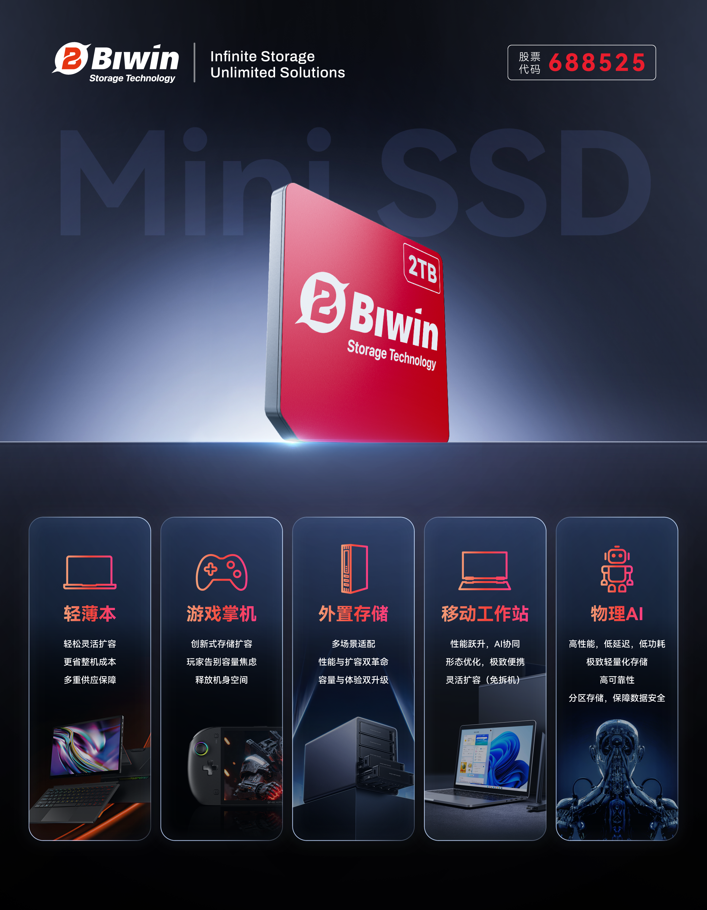 面對歷史性的產業機遇,佰維存儲憑借深厚的技術積淀與前瞻的戰略眼光,推出了革命性產品——Mini SSD。這并非對現有存儲方案的簡單迭代,而是對SSD固有形態的徹底重塑,是一次面向未來的全新產品定義。